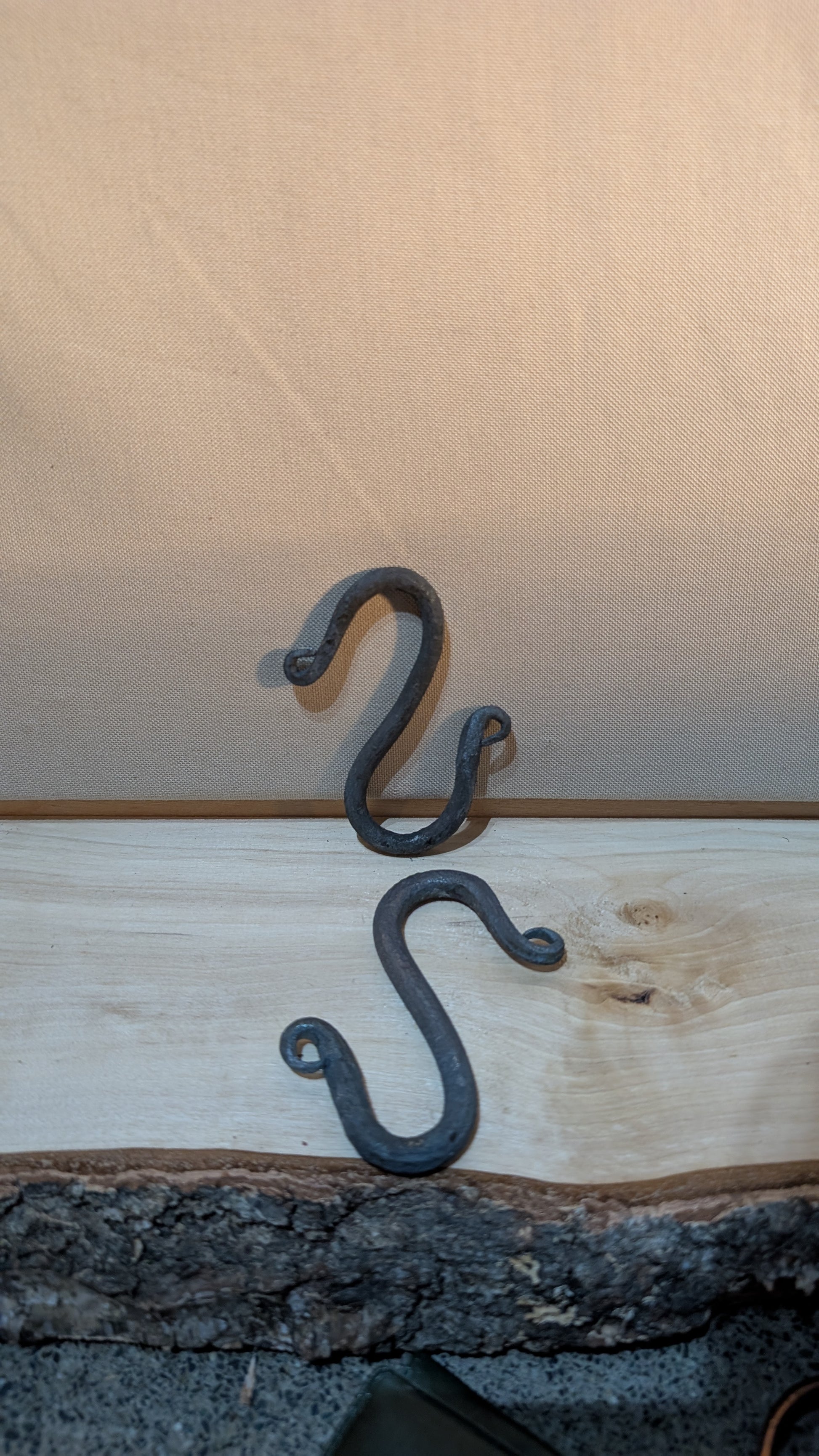 S-krok til henging av kleder, blomster, eller andre ting smidd finnish